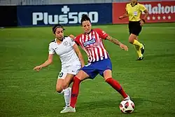 After playing only one season at Paris Saint-Germain, Hermoso returned to Spain and re-joined Atlético Madrid on 10 August 2018.[6] In her one-season back, she was a key player in Atlético winning their third consecutive league title. At the end of the season, Hermoso scored 24 goals with Atletico to earn her first Pichichi title with the club and her third such title overall.[45] In the 2018–19 Copa de la Reina, she was runner-up when Atlético lost to Real Sociedad 2–1 in the final.[46]