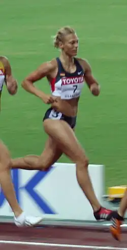 Oeser's first international championship was the 2002 World Junior Championships in Athletics and she finished in eighth place with a score of 5405 points. She improved her personal best to 5901 points to win the gold medal at the 2003 European Athletics U23 Championships. Moving up to the senior ranks, she finished fourth in the heptathlon at the 2006 European Athletics Championships in Gothenburg and was seventh in the event at the 2007 World Championships in Athletics. Oeser was eleventh at the 2008 Summer Olympics in Beijing.[1] She set a personal best of 6493 points to win the silver medal in the heptathlon at the 2009 IAAF World Championships in Berlin. The following year she was at the Erdgas Meeting in Ratingen, Germany, holding off her domestic rival Lilli Schwarzkopf to win with a total of 6427.[2]