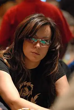 In January 2010, she resumed her poker career.[33] She was nominated for PokerListings' Spirit of Poker Living Legend Award in 2014,[34] and as of July 2019, her live tournament winnings exceeded $1 million.[11]