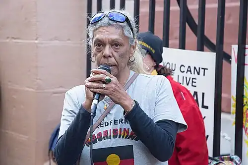Jenny Munro (née Coe) is an Australian Wiradjuri elder and a prominent activist for the rights of Indigenous Australians. She has been at the forefront of the fight for Aboriginal housing at The Block in Sydney and started the Redfern Aboriginal Tent Embassy.[1] She is the sister of activists Isabel Coe and Paul Coe.[2]