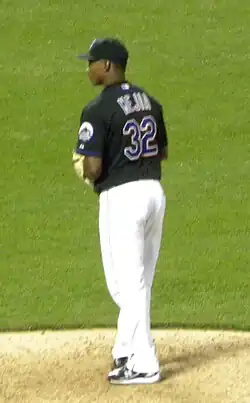 In 2014, Mejía won the Mets' fifth starter role out of spring training, beating out Daisuke Matsuzaka and John Lannan.[15] Mejía's first start and win came on April 4 at Citi Field against the Cincinnati Reds in which he went 6 innings striking out 8 and allowing 4 hits, 1 run, and 5 walks. After struggling in seven starts, Mejía was moved into the bullpen on May 12.[16] The Mets began using Mejía as the closer, after the release of former closers Kyle Farnsworth and José Valverde.[17] On May 25, Mejía played a key role in a double header against the Arizona Diamondbacks. In the first game, Mejía gave up a run off a fielder's choice to Diamondbacks shortstop Chris Owings in the top of the 9th inning. The Mets would go on to lose the first game 2–1. However, in the second game, Mejía again pitched the 9th inning, this time earning his 3rd save of the season in a 4–2 Mets victory. Mejía earned 28 saves in 31 chances on the season.[18] As closer, Mejia was known for a distinctive stomp to celebrate completing a save.[19]