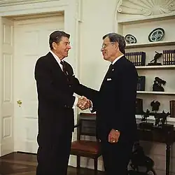 Denton was also outspoken on national security issues, particularly with regard to the Soviet Union. By the mid-1980s, he told Time at the outset of the decade, "We will have less national security than we had proportionately when George Washington's troops were walking around barefoot at Valley Forge."[19] Along with Republican senators Orrin Hatch and John East, Denton set up and later chaired the Senate Judiciary Subcommittee on Security and Terrorism, which focused on communist and Soviet threats.[20] Citing testimonies from journalist Claire Sterling, former CIA director William Colby, neoconservative writer Michael Ledeen and journalist and spy thriller writer Arnaud de Borchgrave, the committee alleged that left-wing activist groups, publications, and think tanks had been infiltrated by Soviet agents of the KGB.[21] Media at the time referred to committee's role and its accusations bearing similarity to the Red Scare tactics used by Senator Joseph McCarthy in the 1940s and 1950s.[22]