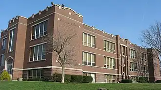 Jerman School is a historic school building located at Greensburg, Decatur County, Indiana. It was built in 1914, and is a two-story, Tudor Revival style steel frame building on a raised foundation. It is sheathed in brick with limestone trim and consists of two projecting end bays, two classroom wings, and the central entrance bay. The building was renovated in 2003 to house senior apartments.[2]: 5, 12