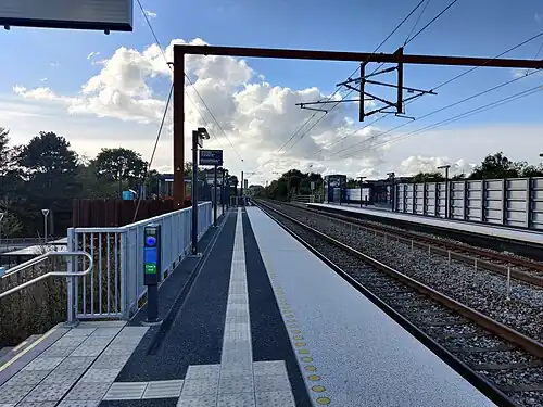 Jerne railway halt was constructed in 2020 on the Lunderskov–Esbjerg railway line which opened in 1874.[3] Construction work began in June 2020 and the railway halt opened on 13 December 2020.[5][6] Due to the COVID-19 pandemic, the inauguration was held digitally.[5] The station itself was built by Banedanmark, while Esbjerg Municipality established the station's forecourt, which was inaugurated on 14 July 2021.[5]
