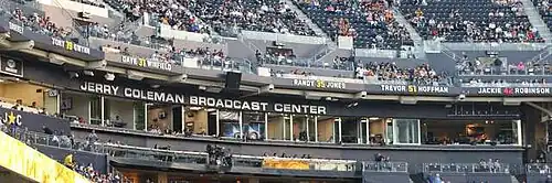 He was inducted into the San Diego Padres Hall of Fame in 2001.[26] In fall 2007, Coleman was inducted to the National Radio Hall of Fame as a sports broadcaster for his years as the play-by-play voice of the San Diego Padres.[3] The Padres would also dedicate their press box to Coleman, renaming it "The Jerry Coleman Broadcast Center".