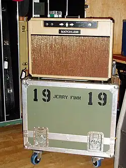 Finn was known for his dynamic, warm guitar sound, featured prominently on Blink-182 albums and Sum 41's All Killer No Filler (2001).[5] "Whenever I could corner him at a party, I harassed him about how he gets guitar sounds and how he gets his mixes to sound so punchy," said producer and Goldfinger frontman John Feldmann.[11] Finn achieved the sound by recording instruments through more than one amplifier at the same time.[5] "Many engineers try to keep everything separate and add effects later," said Finn. "Players play to the sound, so you just have to get a sound and go with it. This allows you to mix tones together to get just the right sound."[5] Finn reportedly owned over 100 guitars,[4] and he would often bring large collections of instruments and amplifiers to the studio.[5]
