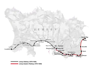 ![]() Jersey Eastern Railway on a map of former railways of Jersey | |