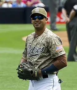 On November 20, Guzmán signed a minor league contract with the San Diego Padres. He had his contract purchased by San Diego on June 16, 2011.[2] The San Diego Union-Tribune wrote that Guzmán line-drive hitting style was perfectly suited to the Padres' home at Petco Park, and he emerged as the best hitter on their 2011 team, hitting .312 with a .847 OPS in 247 at-bats. However, he was not a proficient fielder at either first base or left field.[3][4] Padres general manager Jed Hoyer projected Guzmán as a second option at first base (behind Yonder Alonso) in 2012, otherwise he was a possibility in left field.[5]