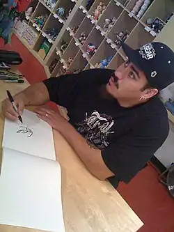 Jesse Hernandez is an American tattoo artist and graphic designer for video games and collectible toys. He was a part of the urban vinyl art movement of the 2010s.[1] He was also the lead character and prop designer on United Front Games' ModNation Racers.[2] His designs have been featured on Kidrobot's Dunny toys, including one owned by singer-songwriter Usher.[3]