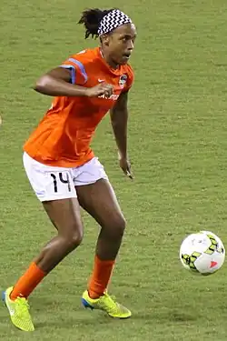 On January 16, 2015, McDonald was traded by the Thorns to the Houston Dash for the 13th pick in the 2015 NWSL College Draft and a second round selection in the 2016 NWSL College Draft.[26][27] McDonald led the Dash's inaugural season in goals with seven during the 2016 season.[28] She scored the game-winning goal during the team's 1–0 win over her former team the Portland Thorns in May.[29] The Dash finished in fifth place during the regular season with a 6–8–6 record.[30]