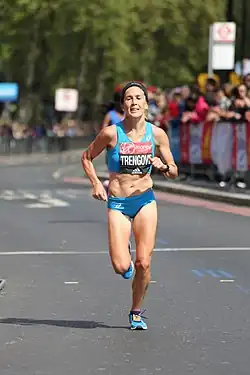 Stenson competed in the City to Bay Run in 2010, finishing first.[7] That year, she also competed at the Nanning, China hosted World Half Marathon Championships.[3] She ran her first marathon in March 2012,[9] where she set an Olympic A qualifying time of 2 hours, 31 minutes.[4] In 2012, her training regime included running up to 160 kilometres (99 mi) a week.[9] On her light training days, she ran 12 kilometres (7.5 mi).[9] Trengove was selected to represent Australia at the 2012 Summer Olympics in the women's marathon.[1][10] She was the third South Australian athletics competitor to qualify for the Games,[4] and prepared for them by training in Adelaide.[8] She finished the Olympic marathon in 39th place with a time of 2:31:17, 8 minutes and 10 seconds behind the first-place finisher Tiki Gelana.[11] At the 2014 Commonwealth Games, she won the bronze medal, running a then personal best of 2:30:12.[12] She came 22nd in the same event at the 2016 Rio de Janeiro Olympics in a time of 2:31:44.[13] She finished ninth in the 2017 IAAF World Championships marathon in a time of 2:28:59. This was the best performance by an Australian woman in a World Championship.[14]