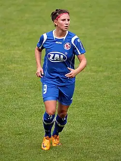 Jessica Wich began her career at the age of 6 years at SV Höfles/Vogtendorf. She then moved to TSF Theisenort followed by SV Reitsch. In 2006 Wich moved to SC Regensburg which just won promotion for the second division. She scored four goals in her first season. Just one year later at the age of 17 she moved to Potsdam and played for one of the best female German soccer clubs 1. FFC Turbine Potsdam.[1] On 26 August 2007 she scored her first Bundesliga goal against SG Wattenscheid 09. In January 2008, she won her first national title with the DFB-Hallenpokal. In her first Bundesliga season, she was the most successful scorer of her team with 13 goals. A year later she won with Potsdam the DFB-Hallenpokal again and got her first German championship title. She was also part of the squad, who one the UEFA Champions League in 2010. Throughout her four seasons at Potsdam she scored 35 goals in 82 appearances in the Bundesliga, the Bundesliga Cup and Champions League. In June 2011 she announced her transfer to Hamburg.[2] After the season 2011/12 Wich joined the club 1. FFC Frankfurt signing a three-year contract.[3] In this period she had 22 appearances and won the DFB-Pokal. On 20 May 2014, Bayer 04 Leverkusen announced Wich's commitment to the season 2014/15. Wich played for Leverkusen for several seasons, staying after the club's relegation.[4]