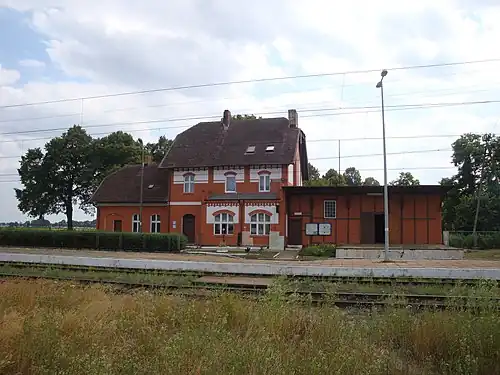 Jezierzyce Słupskie or Jezierzyce Słupsk is a PKP railway station in Jezierzyce, Pomeranian Voivodeship, Poland. It is a historic railway station built in 1870 in the Prussian Partition of east-central Pomerania (German: Jeseritz), now located on the outskirts of the Jezierzyce housing estate.[1]