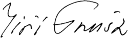 Jiří Gruša (10 November 1938, in Pardubice – 28 October 2011, in Bad Oeynhausen[1]) was a Czech poet, novelist, translator, diplomat and politician.[2]