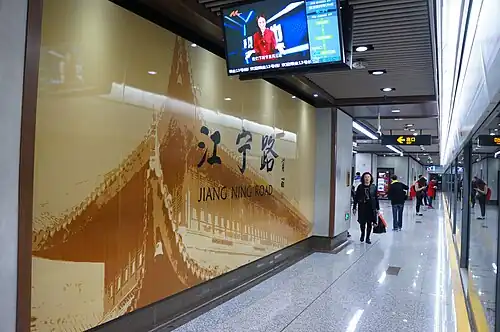 Jiangning Road (simplified Chinese: 江宁路; traditional Chinese: 江寧路; pinyin: Jiāngníng Lù) is a station on the Shanghai Metro, which services Line 13 and opened on December 19, 2015.[1] Travelling eastward, this station is the last station in Putuo District before it passes under Suzhou Creek to Jing'an District.