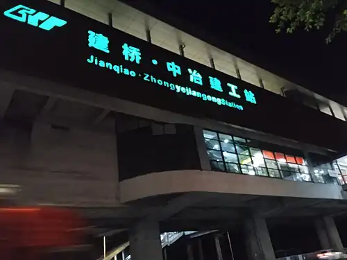 Jianqiao Zhongyejiangong Station, or Jianqiao Station, is a station on Line 2 of Chongqing Rail Transit in Chongqing municipality, China.[1] It is located in Dadukou District and opened in 2014.[2]