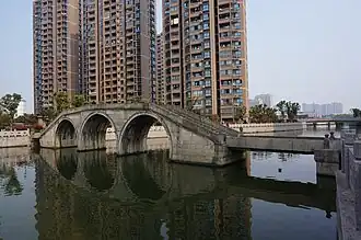 The Jiedu Bridge (simplified Chinese: 接渡桥; traditional Chinese: 接渡橋; pinyin: Jiēdù Qiáo) is a historic stone arch bridge over the Jilong River (鸡笼江; 'Chicken Coop River') in Keyan Subdistrict, Keqiao District of Shaoxing, Zhejiang, China.[1]