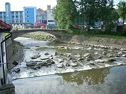 The Jewish synagogue, built in 1862–1863, was burnt down in 1939. Most of Jihlava's Jewish population, which numbered over 1,000 people, was deported and killed due to the Holocaust in Bohemia and Moravia.[13][14] After the end of World War II, starting from 9 May 1945, German-speakers were banned from using public transportation and were ordered to carry white armbands identifying them as Germans.[15] Following the Beneš decrees, most of the German-speakers were expelled.[10]