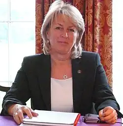Jill Seymour (born 8 May 1958) is a British politician who served as a Member of the European Parliament (MEP) for the West Midlands from 2014 to 2019. Elected for the UK Independence Party (UKIP) in 2014,[1] in April 2019 she defected to the Brexit Party.[2] Despite her defection, she was not selected as a Brexit Party candidate for the 2019 European Parliament elections, and ceased to remain an MEP on 26 May 2019.