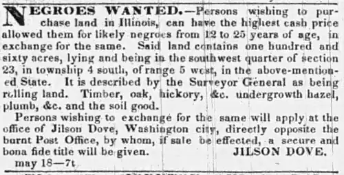 - ^ "Negroes Wanted". Daily National Intelligencer and Washington Express. May 24, 1838. p. 4. Retrieved 2024-05-11.