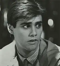 Back on the comedy club circuit with impressions, in fall 1986, Carrey auditioned for SNL's upcoming season, his third attempt at getting on the ensemble sketch comedy show. Finally managing to perform for the show's executive producer Lorne Michaels at a Burbank studio, with returning cast members Dennis Miller, Jon Lovitz, and Nora Dunn also watching the audition, Carrey was rejected again.[41] Among the group of hopefuls auditioning alongside Carrey on this occasion were Dana Carvey and Phil Hartman, both of whom were hired.[41] Sensing that doing only impressions was turning into a career dead-end, Carrey set out to develop a new live comedy act.[42] Much to the dismay of comedy club owners booking him, he began abandoning trademark celebrity impressions, opting instead to try adding observational and character humor to his comedic repertoire, a process that often involved forcing himself to improvise and scramble in front of dissatisfied live audiences that came to see him do impressions.[42] From 1990 to 1994, Carrey was a regular cast member of the ensemble comedy television series In Living Color.[43] The popularity of the series helped him to land his first few major film roles.
