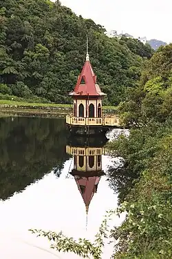 During the Natural Wellington survey, Lynch identified the 252 hectares (620 acres) former Karori water supply reservoir as a key site due to its location, potential and size.[9] In 1992, building on the concept of the "mainland island", Lynch proposed to the WCC and Greater Wellington Regional Council, that the site be fenced to exclude all exotic mammalian pests and become a secure sanctuary for threatened native wildlife, to be managed in perpetuity by a community trust.[10][7] The proposal had several novel aspects, including pest exclusion fencing, ecosystem restoration, urban conservation, community ownership and involvement, public education and enjoyment, and financial sustainability. The idea was to bring the offshore island experience into the city. The sanctuary was also intended to act as a "nursery" to repopulate the surrounding city environs, an effect described by Lynch as the "nursery and halo" model. Known initially as Karori Sanctuary, a feasibility study was undertaken in 1993, public consultation conducted in 1994, and the trust was formed in 1995.[11]
