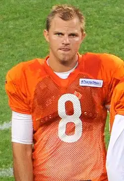 James Richard Clausen (born September 21, 1987) is an American former professional football player who was a quarterback in the National Football League (NFL) from 2010 to 2015. He played college football for the Notre Dame Fighting Irish and was selected by the Carolina Panthers in the second round of the 2010 NFL draft.