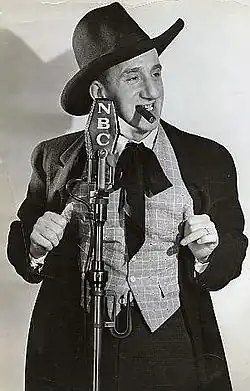 James Francis Durante (/dəˈrænti/ də-RAN-tee, Italian: [duˈrante]; February 10, 1893 – January 29, 1980) was an American comedian, actor, singer, and pianist. His distinctive gravelly speech, Lower East Side accent, comic language-butchery, jazz-influenced songs, and prominent nose helped make him one of the United States' most familiar and popular personalities of the 1920s through the 1970s. He often referred to his nose as the schnozzola (Italianization of the American Yiddish slang word schnoz, meaning "big nose"), and the word became his nickname.