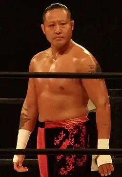 Yasushi Kanda (神田 裕之, Kanda Yasushi; born on August 29, 1978) is a Japanese professional wrestler currently performing for the Dragon Gate wrestling promotion in Japan. He is considered one of Toryumon's greatest heel characters, and was a founding member of the M2K stable. In his pre-injury days, he was famous for his mohawk hairstyle.