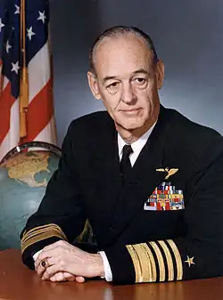 Thach was promoted to vice admiral in 1960[6] and served as the Deputy Chief of Naval Operations for Air in the Pentagon,[8] where he presided over development of the A-7 Corsair II, among other naval aviation programs. As Commander in Chief, United States Naval Forces Europe, starting in 1965, he pinned on his fourth star as a full admiral, retiring from the Navy in May 1967 from that position.[9]