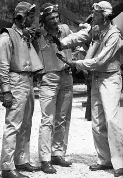 Lieutenant Commander Thach and VF-3 flew from USS Saratoga in the early part of World War II, and was assigned to USS Yorktown during the Battle of Midway in June 1942.[3] On the morning of June 4, Thach led a six-plane sortie from VF-3, escorting twelve Douglas TBD Devastators of VT-3 led by Lieutenant Commander Lance Massey from Yorktown, when they discovered the main Japanese carrier fleet. They were immediately attacked by 15 to 20 Japanese fighters. Thach decided to use his namesake maneuver, marking its first combat usage. Although outnumbered and outmaneuvered, Thach managed to shoot down three Zeros and a wingman accounted for another, at the cost of one Grumman F4F Wildcat.[4][5]