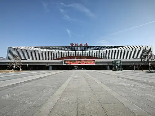 Jincheng East railway station (Chinese: 晋城东站) is a railway station in Shuidong Village, Zezhou County, Changzhi, Shanxi, China. It opened with the Taiyuan–Jiaozuo high-speed railway on 12 December 2020.[1][2] Construction finished on 20 May 2020.[3]