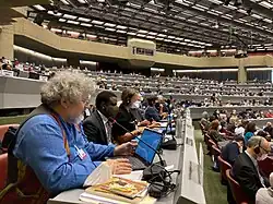 He is in the leadership of IPEN's working group for dioxin, PCB and waste since 2001.[2] In 2005, he began to represent IPEN in the Stockholm Convention's expert group for the assessment of the best available technologies (BAT/BEP Expert Group)[8] and from 2015 also in the "Small Intersessional Working Group" for the issue of waste containing persistent organic substances of the Basel Convention.[9] He was also involved in the preparation of the Minamata Convention (on mercury) best available technology documents.[10]