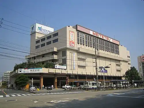 Jingū-mae Station (神宮前駅, Jingū-mae-eki) is a railway station in Atsuta-ku, Nagoya, Japan, operated by the private railway operator Nagoya Railroad. It is the nearest station to Atsuta Shrine.