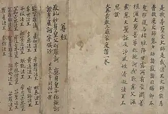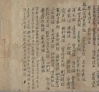 There is no agreed upon name for the collection of texts as a whole. The Japanese scholar P. Y. Saeki described them as the "Nestorian Documents,"[2] which has continued to be used.[3] More recent scholars have moved away from the language of "Nestorian" and simply use the Chinese term, describing them as "Jingjiao Documents."[4]