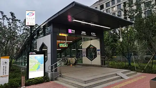 Jinhu Station (Chinese: 金湖) is a station on Line 5 of the Suzhou Metro.[1] The station is located in Suzhou Industrial Park, Jiangsu. It has been in use since June 29, 2021, when Line 5 first opened to the public.[2]
