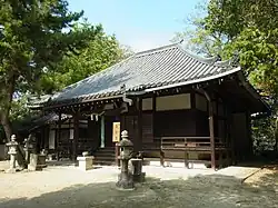 Jinraku-ji (秦楽寺) is a Buddhist temple in the town of Tawaramoto, Nara Prefecture, Japan. It is located in Tawaramoto near Kasanui Station. It was commissioned by Prince Shotoku in the 5th century and built by Hata no Kawakatsu. The Great Hall contains a Bodhisattva while outside there is also a Shinto shrine with a torii and a pond in the shape of a Chinese character.[1]