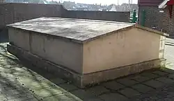 Jenkins enlisted William Huntington to open the church, which was completed in 1805.[3] Huntington, originally from Cranbrook in Kent, was an orthodox but controversial Calvinist preacher who ministered at Providence Chapel, Grays Inn Lane, London. Known by various pseudonyms, he became very popular in southeast England in the early 19th century, and helped to found several Calvinist chapels.[6] An example of his eccentricity was his reference to Jenkins as "W.A." (the "Welsh Ambassador") and himself as "S.S." ("Sinner Saved");[7] the "W.A." epithet featured on a tablet below the chapel's gabled roof which commemorated its opening. It reads Jireh chapel erected by J. Jenkins W.A. with the voluntary Contributions of the Citizens of Zion; Anno Domini MDCCCV.[3][8] Huntington died in 1813 and was buried in a tomb in the small graveyard behind the chapel.[4][7][9]