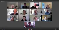 Jitsi Meet is an open source JavaScript WebRTC application used primarily for video conferencing. In addition to audio and video, screen sharing is available, and new members can be invited via a generated link. The interface is accessible via web browser or with a mobile app.[39] The Jitsi Meet server software can be downloaded and installed on Linux-based computers.[40] Jitsi owner 8x8 maintains a free public-use server for up to 100 participants at meet.jit.si.[41]