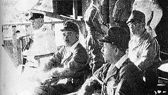 In March, when briefing Emperor Hirohito on Japan's response to the expected invasion of Okinawa, Japanese military leaders explained that the Imperial Japanese Army was planning extensive air attacks, including the use of kamikaze tactics. The emperor then reportedly asked, "But what about the Navy? What are they doing to assist in defending Okinawa? Have we no more ships?" Feeling pressured by the emperor to mount some kind of attack, Japanese Navy high command conceived a kamikaze-type mission for their remaining operational large ships.[77] Ozawa was involved in the planning of Operation Ten-Go, code name of the suicide attack of battleship Yamato, cruiser Yahagi and eight other warships against Allied forces engaged at Okinawa.[78][79]