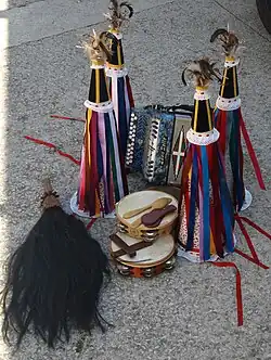 - A conical hat, the tunturro, which is 0.5 metres long with colourful ribbons and feathers, on the head.