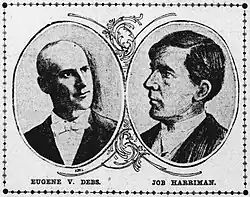 Job Harriman (January 15, 1861 – October 26, 1925) was an American minister who later became an agnostic and a socialist. In 1900, he ran for vice president of the United States along with Eugene Debs on the ticket of the Socialist Party of America. He later twice ran for mayor of Los Angeles, drawing considerable attention and support. He also founded a socialist utopian community called Llano del Rio in California, later relocated to Louisiana.