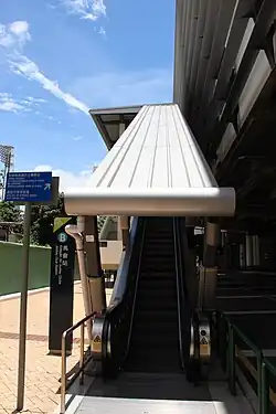 Jockey Club station was originally named "賽馬會站" in Chinese, and was planned to be around 100 metres west of the present location, until the proposal was updated in 2009.[1] Building work of this and other three stations in Taipa began in 2012,[2] and later that year Estrada Gov. A. Oliveria Public Transport Interchange also started construction. Jocky Club station work was completed in 2016,[3] but the opening was delayed due to ongoing work at Taipa line train depot.