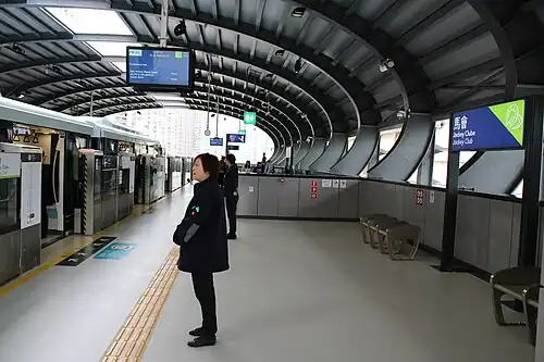 Jockey Club station (Chinese: 馬會站; Portuguese: Estação Jockey Clube) is a station on Taipa line of the Macau Light Rapid Transit, located within two-minute walking distance of Macau Jockey Club.