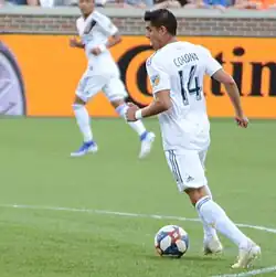 On March 6, 2019, Corona signed for MLS side LA Galaxy.[40][41] He made his Galaxy debut on March 9, playing the full 90 minutes in a 2–0 loss to FC Dallas. He scored his first goal for Los Angeles on September 15 to help the Galaxy defeat Sporting Kansas City 7–2.[42] Corona ended his first season with the Galaxy with 1 goal and 3 assists from 31 regular season appearances, helping the Galaxy qualify for the playoffs after finishing 5th in the Western Conference.[43][44] Corona did not make an appearance in either of the Galaxy's 2 playoff games.[43][42]