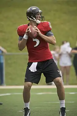 Joseph Vincent Flacco (born January 16, 1985) is an American professional football quarterback for the Cleveland Browns of the National Football League (NFL). He played college football for the Pittsburgh Panthers and the Delaware Fightin' Blue Hens before being selected by the Baltimore Ravens in the first round of the 2008 NFL draft.