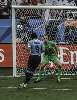 Hart was selected for his second FIFA World Cup in 2014.[164] He made his tournament debut in England's first group match, a 2–1 defeat to Italy in Manaus,[165] and also played in the next match, a loss by the same scoreline to Uruguay where Luis Suárez scored both goals.[166] With England not likely to advance, Hodgson made changes for their last match, against Costa Rica, with Ben Foster playing in goal instead.[167] In what turned out to be Hart's only World Cup tournament as first-choice keeper, England went out in the group stages.