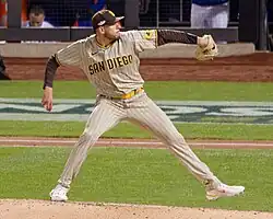 Musgrove followed up his 2021 campaign with a strong season in 2022, recording a career-best 2.93 ERA over 181 innings pitched, the lowest ERA among the Padres starting rotation that season.[34] 21 of Musgrove's 30 starts in 2022 were quality starts, and Musgrove had the 9th-lowest ERA among qualified NL starting pitchers.[34] Musgrove pitched the third game of the 2022 NL Wild Card Series against the New York Mets, holding the Mets scoreless over seven innings while allowing only two baserunners.[35] Musgrove pitched the fourth game of the NLDS against the Los Angeles Dodgers and earned the win in the series-clinching game, holding the Dodgers to two runs over six innings despite allowing nine baserunners.[36]