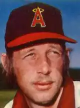 Rudi, along with Don Baylor, ended up leaving the A's as a free agent and signed with the California Angels for the 1977 season. However, Rudi's tenure with the Angels was mostly injury-plagued, even though he posted respectable home run and RBI totals in his four seasons. His best year with the Angels was 1978, when he played in 133 games and hit .256 with 17 home runs and 79 RBIs. He missed the Angels' 1979 post-season run with injury. After the 1980 season, Rudi was traded by the Angels along with Frank Tanana to the Red Sox for Fred Lynn.[1] After one injury-filled season, he closed his career back with the A's in 1982 and hit a home run in his last professional at-bat.