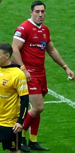 In 2011, he spent time on loan at the Barrow Raiders.[9] After performing well in the first half of the season, he was given a two-year contract extension, keeping him at the Galpharm Stadium until the end of 2014.[10] In July 2013, he was rewarded with a further contract extension until 2017.[11] He was named the 2014 Huddersfield Giants season's player of the year.
